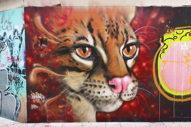 Being able to make someone's day better and more colorful is always a pleasure! I received so many compliments while painting this one, while photographing it the day after and even weeks and months passed I still get to know more positive opinions from all kinds of people! Even one lady had her daughter talking to the ocelot I painted. She sent me a video and it was really nice to see. Every day her daughter was saying hello to the ocelot and sometimes even touched the wall, on the nose area :)